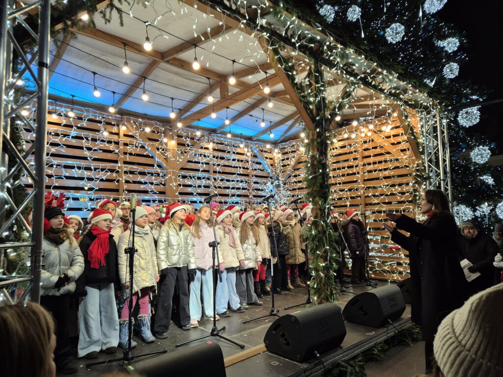 A o godzinie 17:00 serca publiczności skradły nasze dzieci, które wystąpiły na scenie z przepięknym repertuarem świątecznym, przygotowanym przez Panią Emilię Orkisz 🎶✨Dzieci zaprezentowały się wspaniale – z odwagą, emocjami i ogromnym zaangażowaniem. Była duma, wzruszenie i gromkie brawa 👏