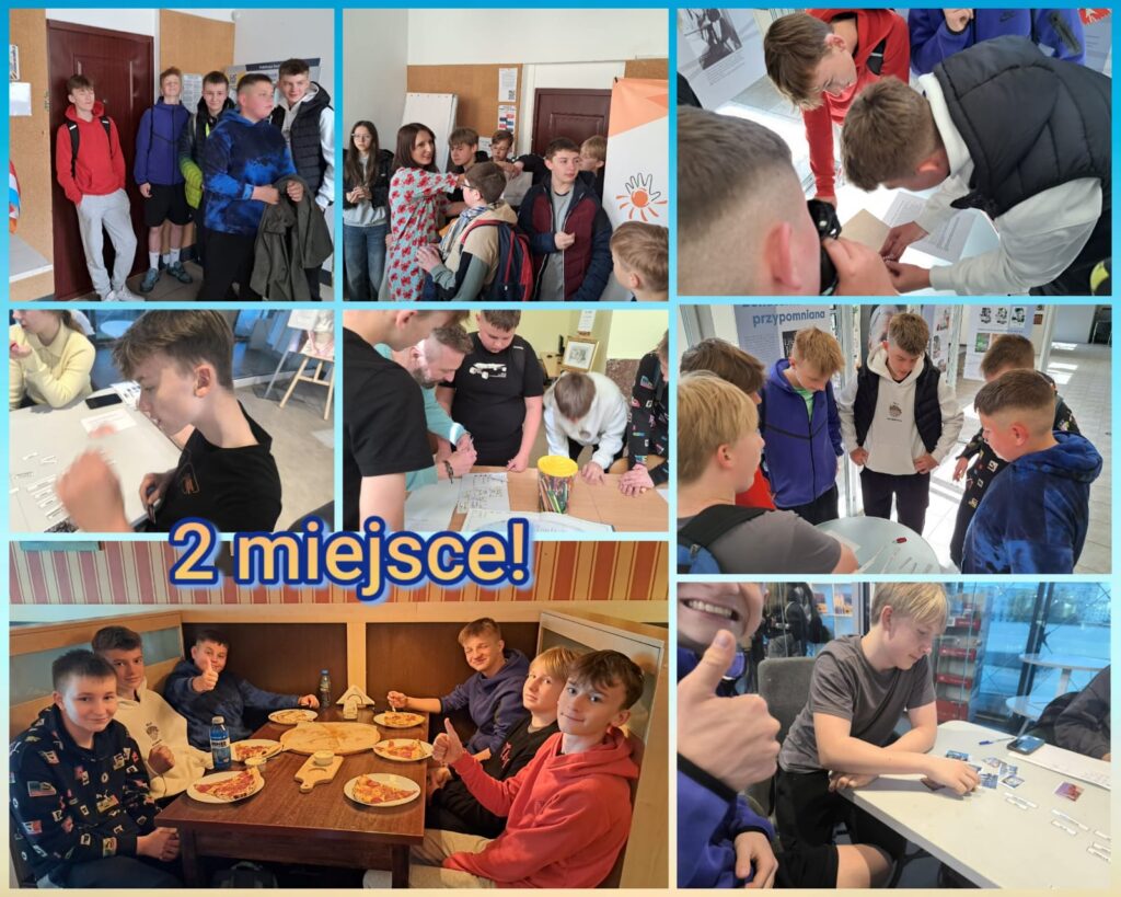 9 maja reprezentacja szkoły – sześciu uczniów kl.7a, wzięła udział w tegorocznej grze terenowej z okazji Dni Europy INFOPACK. Chłopcy musieli wykazać się nie tylko wiedzą z zakresu historii, ale również orientacją w terenie i wielką sprawnością fizyczną, dzięki którym w błyskawicznym tempie pokonywali drogę pomiędzy punktami zadaniowymi. To był sprint od punktu A do punktu B w wykonaniu 7a 😀 W nagrodę przekąsili pizzę, która była nagrodą od organizatorów – Regionalnego Centrum Wolontariatu w Kielcach. Cała drużyna, jednogłośnie, zarządziła wyjście w przyszłym roku i juz zaczęła opracowywać strategię dla miejsca 1 😀