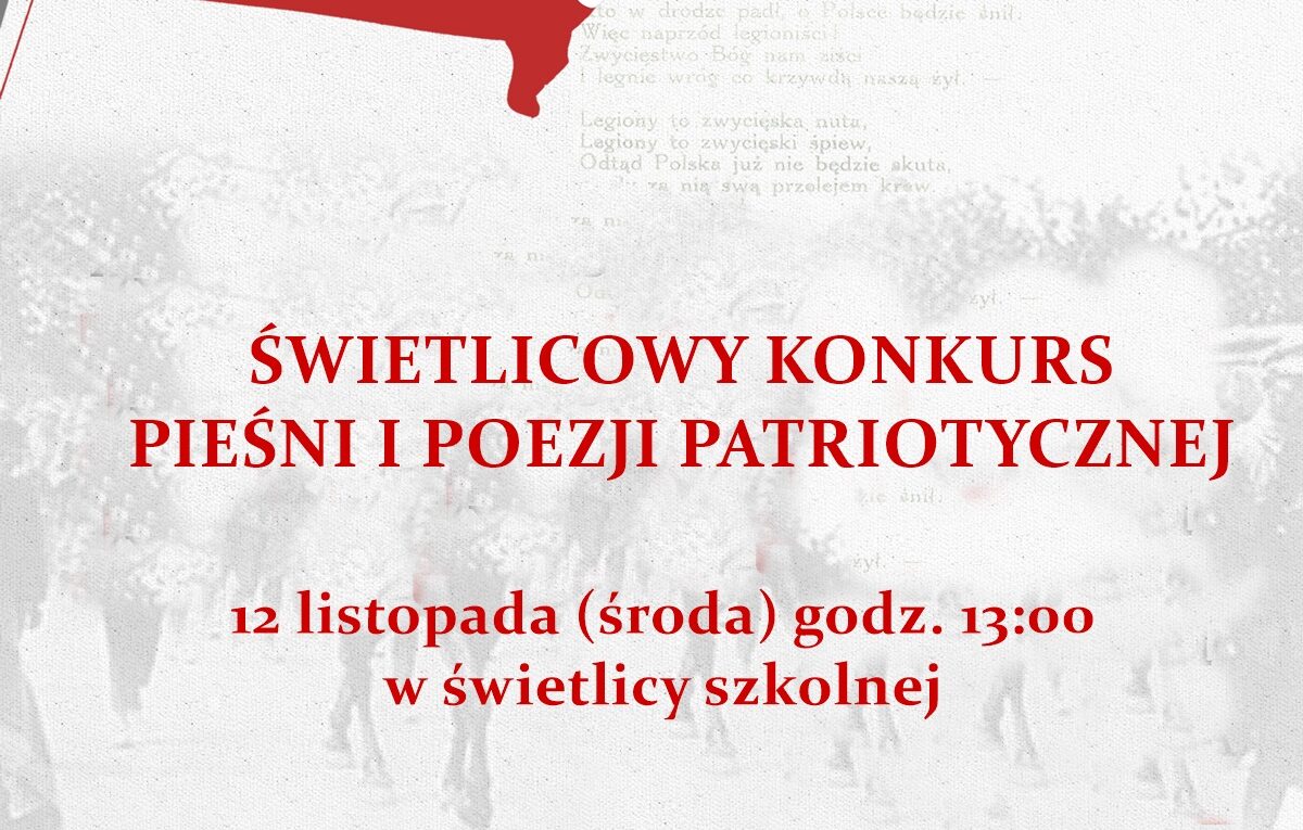 Czytaj dalejŚWIETLICOWY KONKURS PIEŚNI I POEZJI PATRIOTYCZNEJ CELEM KONKURSU JEST: ▪ popularyzacja poezji i pieśni patriotycznych wśród dzieci ▪ kształtowanie postaw