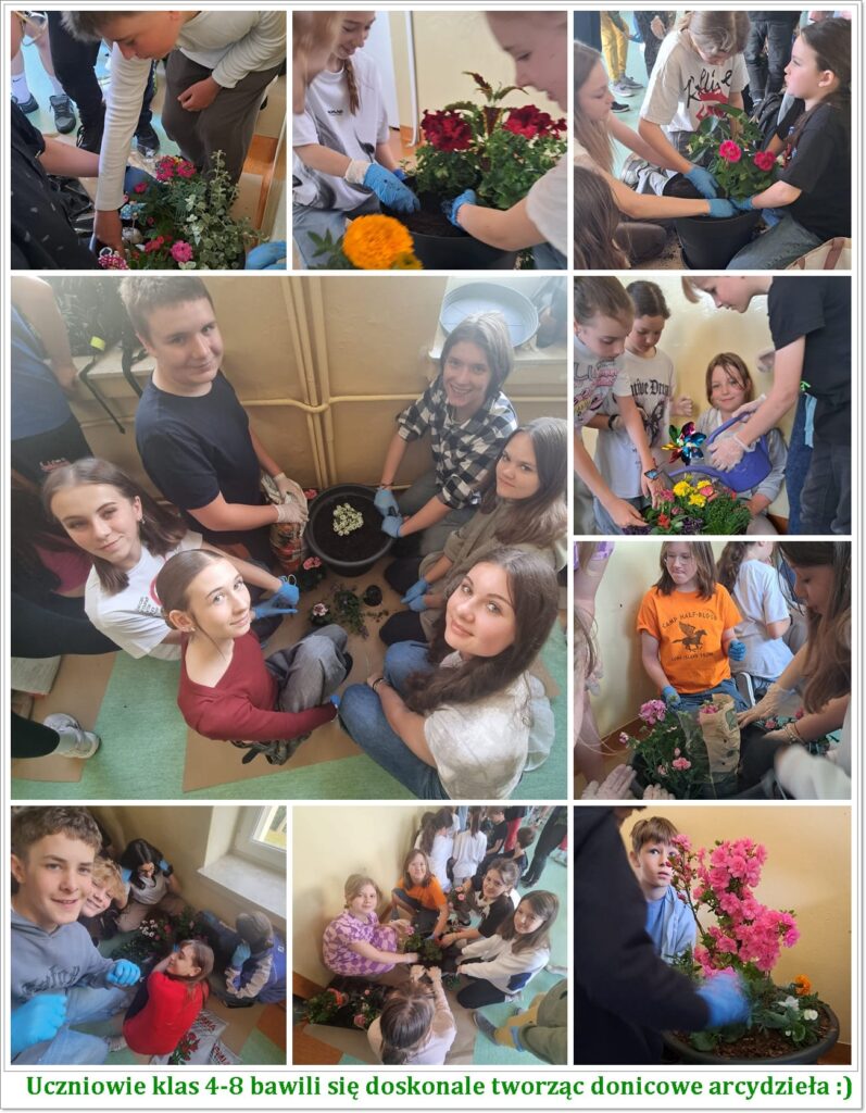 Po raz drugi szkoła wypełniła się ogrodnikami 🙂 23 kwietnia uczniowie przystąpili do akcji SU – dzieła tworzenia małych, kwiecistych ogródków 🙂 Architektura zieleni powinna być dumna! Powstały kolorowe cudeńka, które będą cieszyły oczy aż do późnej jesieni. 🪴🪻🌿🌼 A wszystko za sprawą uczniów, przy wsparciu Rodziców i pod czujnym okiem nauczycieli i wyjątkowego Jury – specjalistek od kwiatów, ogrodów i skalniaków – Pań ze Świętokrzyskiej Rady Seniorów. Godzina pracy i zabawy, a duma na zawsze 🌼