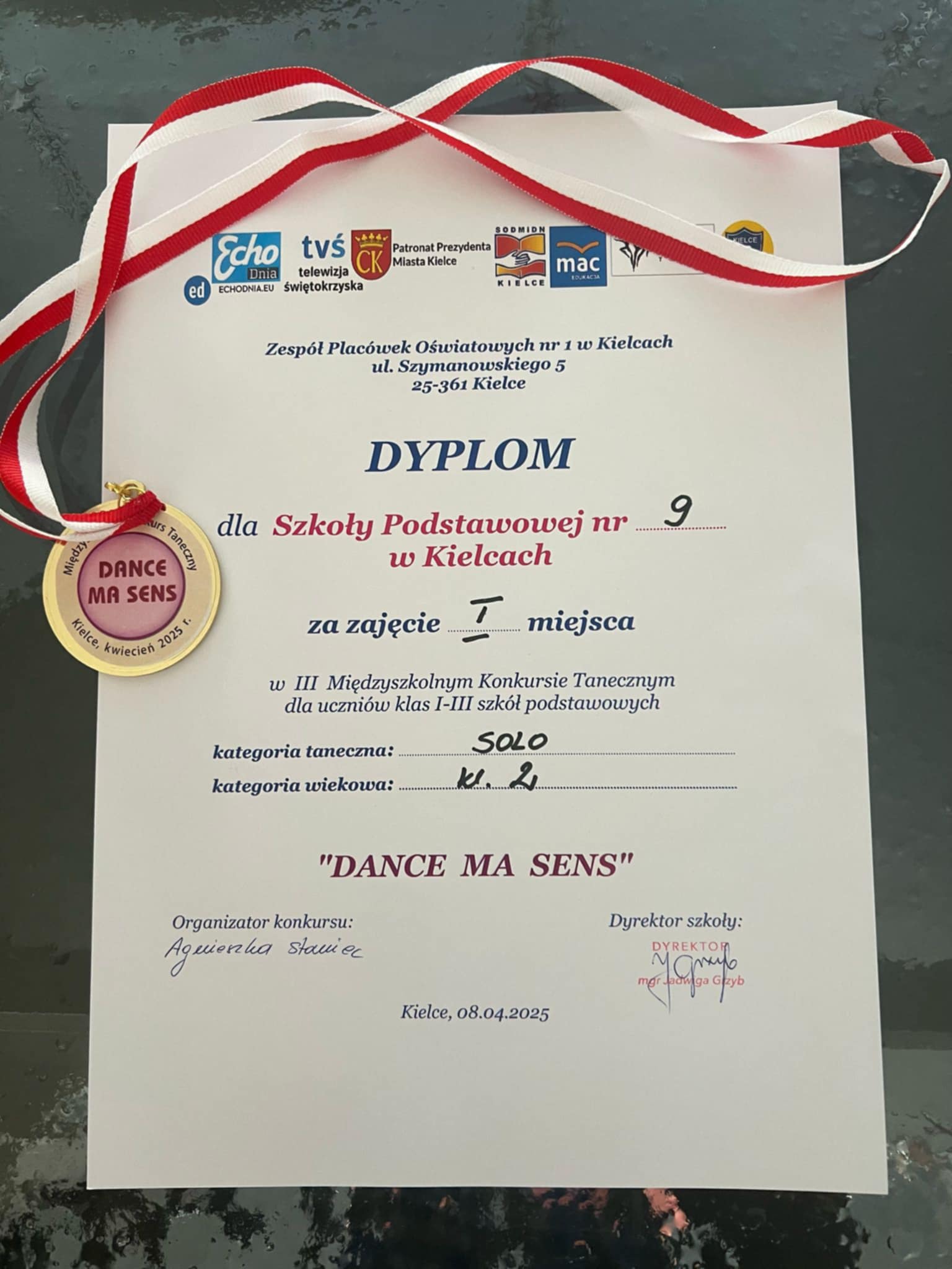 Bianka Tokarz z klasy 2a zwyciężczynią Międzyszkolnego Konkursu Tańca ” DANCE MA SENS” !!! 🏆🥇