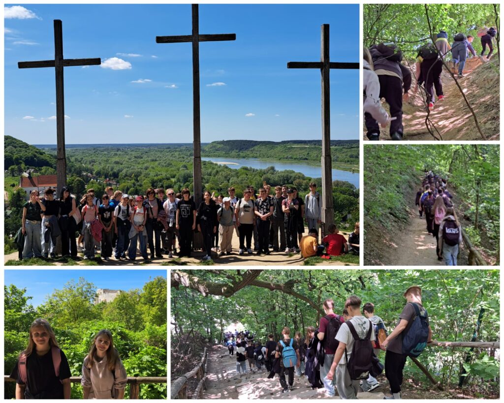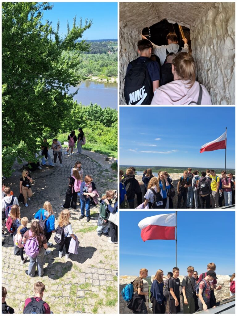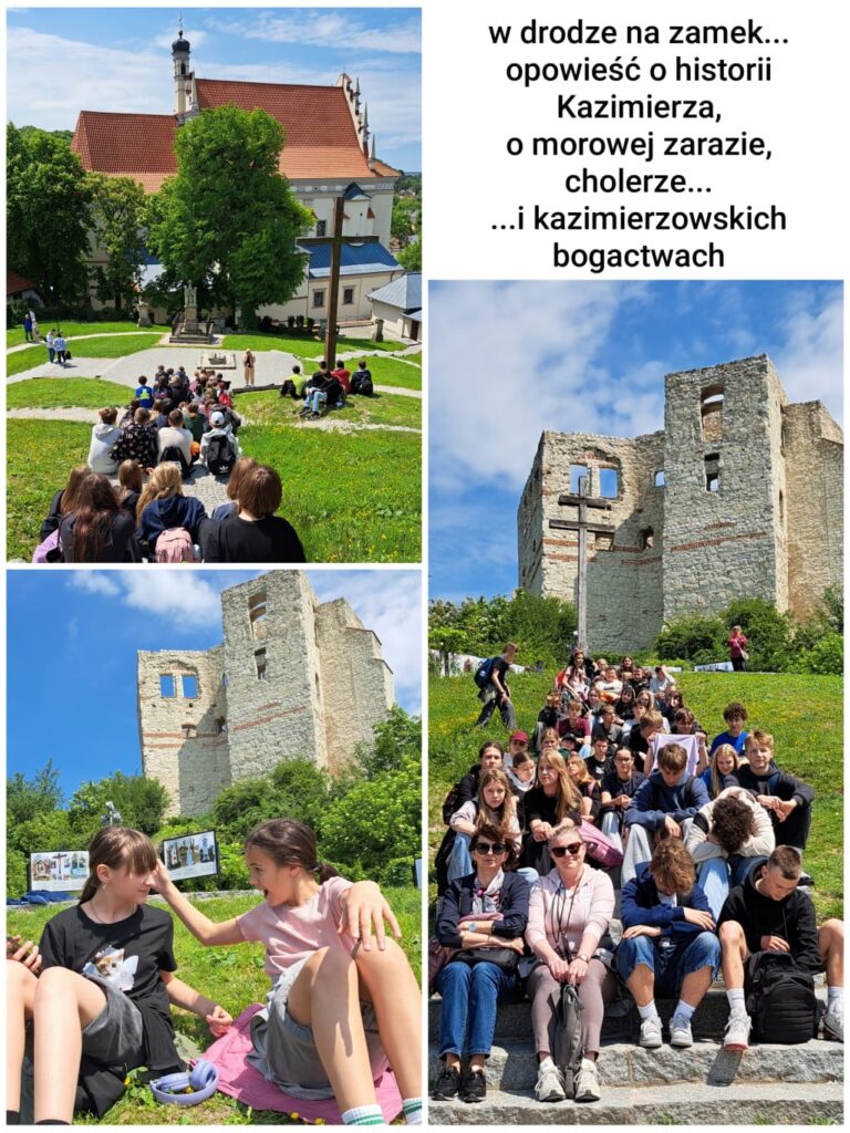27 maja. Wtorek. Klasy 7 pod opieką wychowawczyń zawitały z wizytą do miasta artystów, twórców i celebrytów – Kazimierza nad Wisłą 🙂 Był rejs statkiem, był spacer do Zamku, była Baszta, było Wzgórze Trzech Krzyży i mnóstwo opowieści o wielkości Kazimierza i jego bogactwie, o królach i książętach, Szwedach, o zarazie cholery, o podupadaniu Zamku, o groźbie zawalenia i sposobie Austriaków na przeciwdziałanie wypadkom, czyli wysadzenie Zamku w powietrze… Ale ocalałe i zabezpieczone ruinki pozwoliły na obejrzenie kazimierskiego rynku z perspektywy ptaka 😉