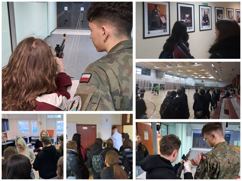 W piątek, 27 marca, uczniowie klas 8a i 8b uczestniczyli w Dniach Otwarych w pierwszej z kieleckich szkół średnich. Szkoła przygotowała mnóstwo atrakcji, przewodnicy – uczniowie klas 4 – doskonale zajmowali się naszymi ósmoklasistami, oprowadzali po szkole, pokazywali jej atrakcje i opowiadali o ciekawostkach…Piwnice ZPO zrobiły niesamowite wrażenie (tam też skorzystaliśmy ze strzelnicy), sklepik wielkości prawdziwego sklepiku (albo i nawet większy), niesamowite patio prowadzące do bloku sportowego, korytarze z ławkami, parapety z kwiatkami…wszędzie czyściutko i z pomysłem, a zdjęcia na ścianach…prawdziwe cuda fotografii. No i niewątpliwe atrakcje plus: popcorn, kolorowa wata cukrowa, kiełbasa prosto z grilla i musztra klas mundurowych! 😃 Równiutko, pod linijkę…robiło wrażenie. 4 godziny upłynęły jak mgnienie oka. Dziękujemy za zaproszenie! Było bardzo inspirująco 👍🏻