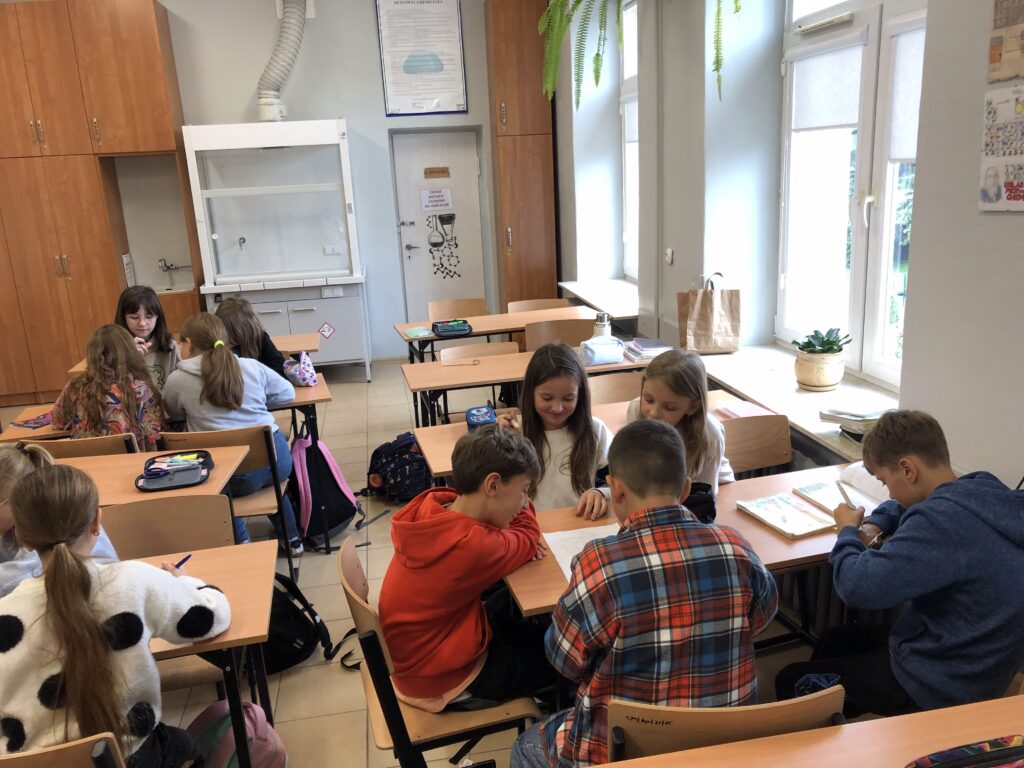 Wyobraźmy sobie szkołę, w której nie ma ocen, zamiast standardowych lekcji są zajęcia kleksografii, a nauczyciel wysyła swoich uczniów po sprawunki do bajek Andersena. Pofantazjujmy dalej – uczniowie tryskają dobrym humorem, mają wewnętrzną motywację do nauki i zawsze wiedzą, o czym jest mowa na zajęciach…Przepis na idealną szkołę i wzorowego ucznia? A może warto choć na moment zamienić tradycyjne zajęcia na Akademię pana Kleksa? Klasa 4b mogła się przekonać jakby to było być uczniami w placówce prowadzonej przez ulubionego bohatera i za aktywność na zajęciach otrzymywała nie plusy, ale…piegi! Praca w grupach przyniosła rezultaty, a przy tym stała się okazją do integracji zespołu klasowego. Nic dziwnego, że teraz każda lekcja języka polskiego zaczyna się od pytania: „Czy możemy pracować w zespołach?”;-)