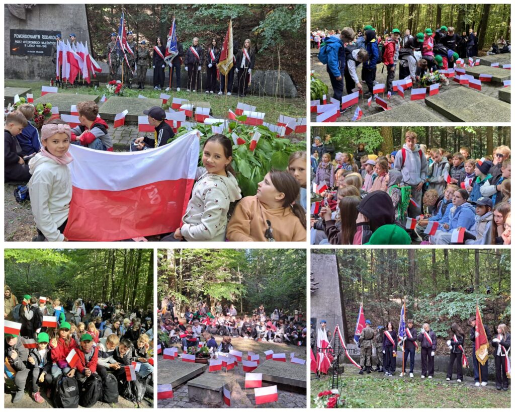 Piątek, 26 września, wszyscy uczniowie, od najmłodszych po najstarszych, punktualnie o zaplanowanej godzinie wyruszyli na jesienny rajd. Trasy, jak co roku, opracowali nauczyciele wychowania fizycznego, za całość odpowiedzialna była pani Dagmara Kotlarska. Zgodnie z wiekiem, uwzględniając możliwości psychofizyczne, każdy z uśmiechem maszerowal przez cudowny, jesienny las 🙂 Wędrówka krótka nie była – dopiero po 3 godzinach cała społeczność spotkała się…na polanie, w miejscu upamiętniającym czas bohaterskiej odwagi, bohaterskiego milczenia, miejscu nie pozwalającym zapomnieć o okrucieństwie wojny, miejscu zadumy i refleksji nad czynami często bezimiennych bohaterów czasu wojny… Wśród wielu na zawsze nieznanych, którzy zginęli w kieleckim lesie Na Stadionie, byli i znani szkolnej społeczności nauczyciele, dyrektorzy, uczniowie… A wśród uczniów – Wojtek Szczepaniak, uczeń SP9, w czasie wojny kurier podziemia, członek Szarych Szeregów, żołnierz AK ps. „Lwowiak”… To właśnie On, jako 17-letni chłopak, przeciwstawił się hitlerowskim oprawcom i za odmowę wydania towarzyszy broni, odmowę bycia konfidentem, został rozstrzelany i skazany na bezimienny grób gdzieś w głębi lasu. Jednak tak jak wtedy ludzie nie zapomnieli, tak i dziś uczniowie SP9 podtrzymują tę pamięć. Uroczysty apel przygotowany przez pana Dariusza Orkisza i panią Emilię Orkisz uczcił 81 rocznicę śmierci Wojtka. Poczty sztandarowe SP9 oraz klasy mundurowej ZDZ Kielce dodawały powagi, warta honorowa wystawiona przez uczniów ZDZ oddała szacunek poległym. Cały teren przygotowany i udekorowany przez Samorząd Uczniowski nadał obchodom bardzo uroczystego charakteru. Obok Dyrekcji SP9 – pana Łukasza Stochmala i pani Eweliny Kowalskiej, przy Pomniku Ofiar Masowych Straceń hołd pomordowanym oddali przybyli Goście – pan Wiceprezydent Tomasz Porębski, ksiądz kanonik proboszcz parafii Chrystusa Króla Jerzy Marcinkowski oraz delegat Komendanta Straży Miejskiej. Odśpiewano hymn, wybrzmiały żołnierskie piosenki, przypomniano historię okrutnego czasu mordu, wspomnienie Wojtka opowiedział ksiądz proboszcz…wśród zgromadzonych panowała niezwyczajna, pełna szacunku cisza. To był prawdziwie podniosły czas, chwila do zatrzymania w pamięci na zawsze.