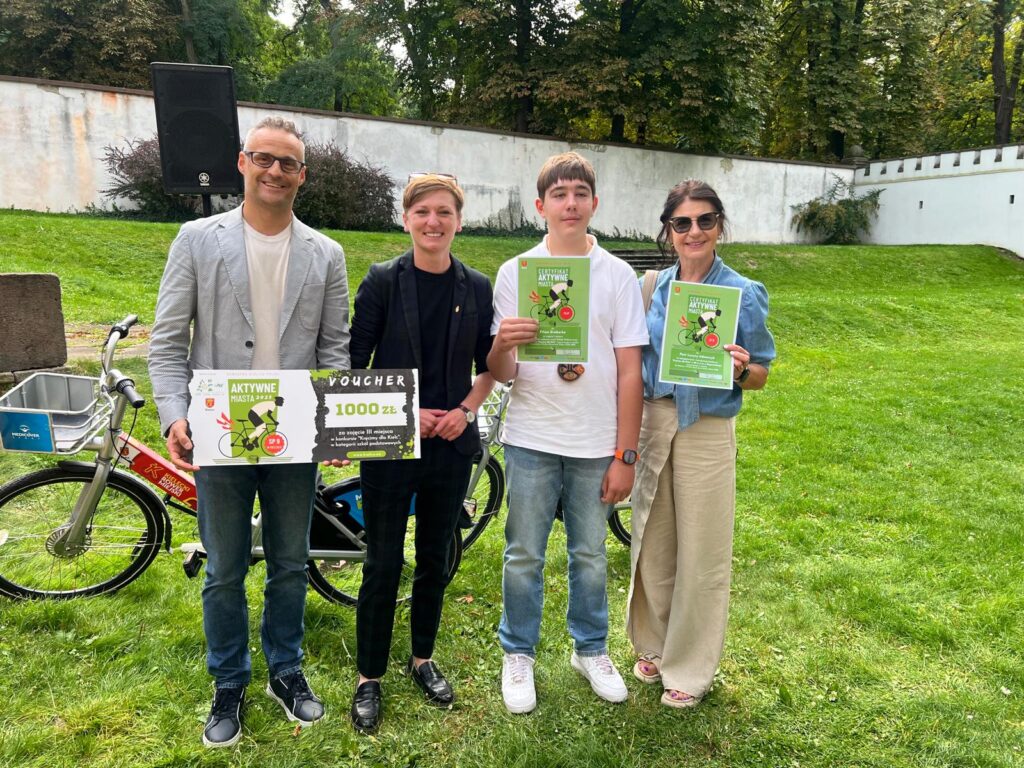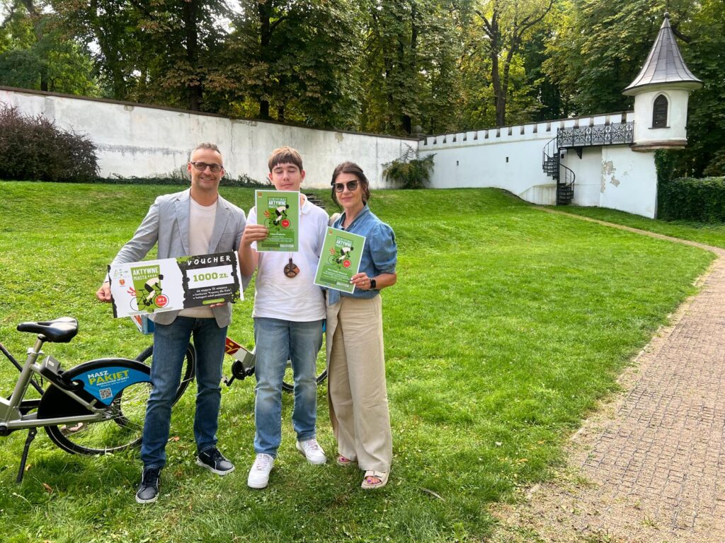 W dniu 27 sierpnia odebraliśmy w ogrodzie Pałacyku Zielińskich nagrodę w ogólnopolskiej rywalizacji ,,Rowerowa Stolica Polski”. Nasi uczniowie wykręcili 7 779 kilometrów dla Kielc i nasza szkoła zdobyła llI miejsce wśród zgłoszonych szkół! 👍🤩💪 Otrzymaliśmy voucher o wartości 1000 zł na zakup sprzętu sportowego. Nagrodzony został Filip Drabarek jako najlepszy uczeń naszej szkoły. Koordynatorem akcji była Lucyna Adamczyk. Kolejna edycja za rok – MUSIMY TRENOWAĆ !💪