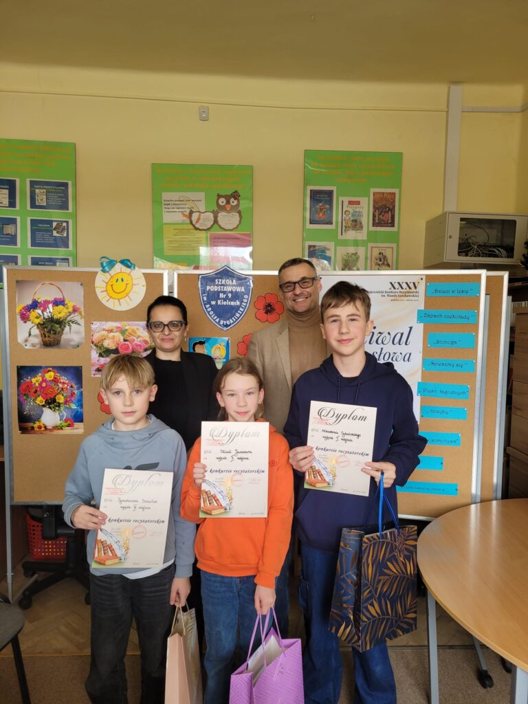 10 lutego 2026r. nauczyciele – bibliotekarze zorganizowali i przeprowadzili etap szkolny „XXXV Wojewódzkiego Konkursu Recytatorskiego im. Wandy Łyczkowskiej. Festiwal słowa. 35 lat z poezją”, organizowany przez Samorządową Szkołę Podstawową im. Wandy Łyczkowskiej w Ostojowie oraz Pedagogiczną Bibliotekę Wojewódzką im. Gustawa Herlinga-Grudzińskiego w Kielcach.