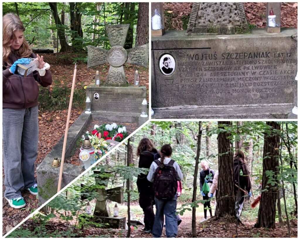 27.10.2022 r. Samorząd Uczniowski wraz z opiekunami udał się na miejsce stracenia Wojtka Szczepaniaka oraz innych ofiar pomordowanych przez Niemców w czasie II wojny światowej. Uczniowie uprzątnęli nagrobki oraz zapalili znicze będące symbolem pamięci uczniów naszej szkoły o wszystkich poległych, którzy oddali życie za naszą Ojczyznę.