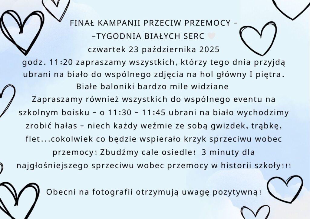 Szczegółowe informacje na temat zbiórki przesłane zostaną do naszej szkolnej społeczności za pomocą dziennika.