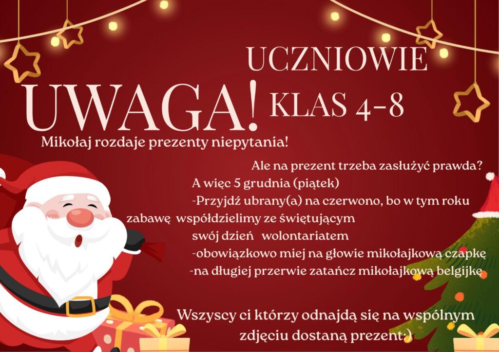 ✅️ Poniżej zaproszenie do akcji Samorządu Uczniowskiego ⬇️🎅⬇️🎅