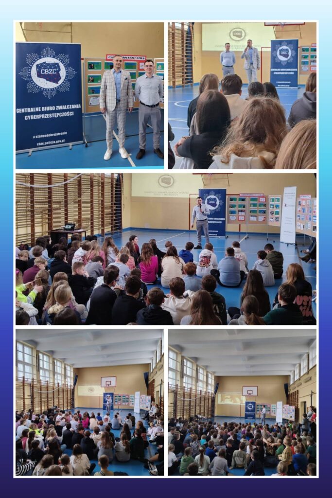 31 marca miały miejsce zajęcia z policjantem CBZC w Kielcach, które stanowiły kolejny rozdział w spotkaniach profilaktyki i prewencji podjętych przez naszą szkołę. Uczniowie wszystkich klas, od 0 do 8, zapoznali się z zadaniami Biura, poznali specyfikę pracy policjantów tej jednostki oraz po raz kolejny zostali uwrażliwieni na aspekt hejtu i jego konsekwencje. Prelekcję dopełniały filmy i krótkie nagrania wywiadów, które skupiały uwagę i stanowiły przyczynek do poruszania kolejnych tematów.