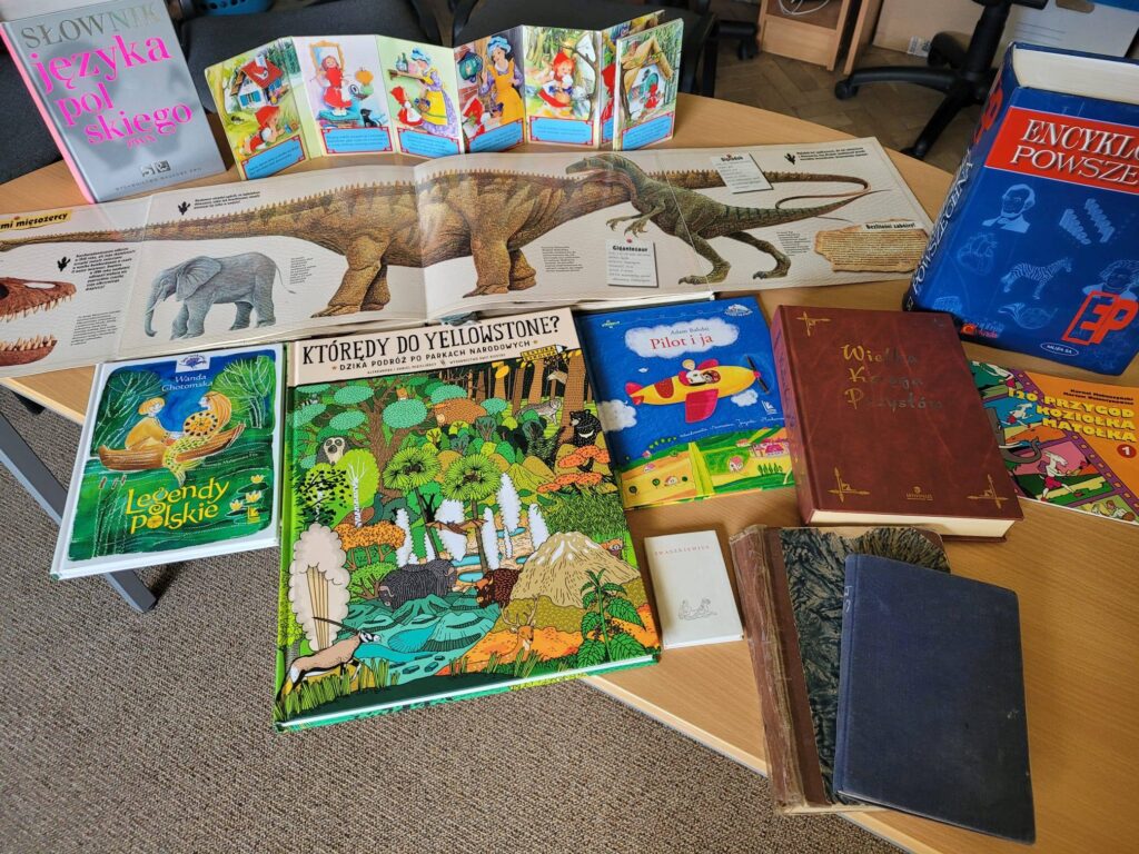 Ponadto pani bibliotekarka pokazała uczniom najstarsze, najcenniejsze, największe i najmniejsze zasoby biblioteczne. Uczniowie poznali różnego rodzaju książki (stare – sprzed czasów II wojny światowej, nowe – pięknie ilustrowane, rozkładane, ruchome, duże i ciężkie (encyklopedie, słowniki). Rozmawiali także na temat bibliotek: szkolnej i bibliotek publicznych znajdujących się w okolicy. Uczniowie zadawali mnóstwo pytań i chętnie uczestniczyli w zajęciach, a po zakończonej lekcji udali się do biblioteki w celu wypożyczenia książek. ![]()