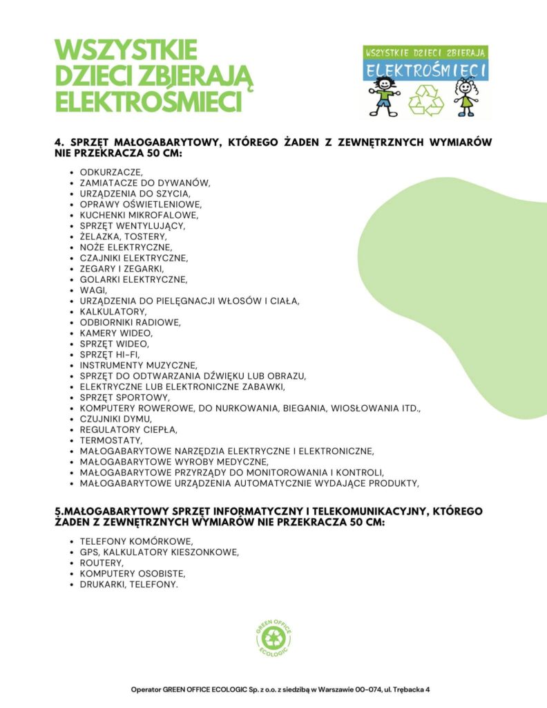 Zużyty sprzęt elektryczny i elektroniczny można przynosić do siedziby szkolnej zerówki po wcześniejszym zgłoszeniu pracownikom szkoły,