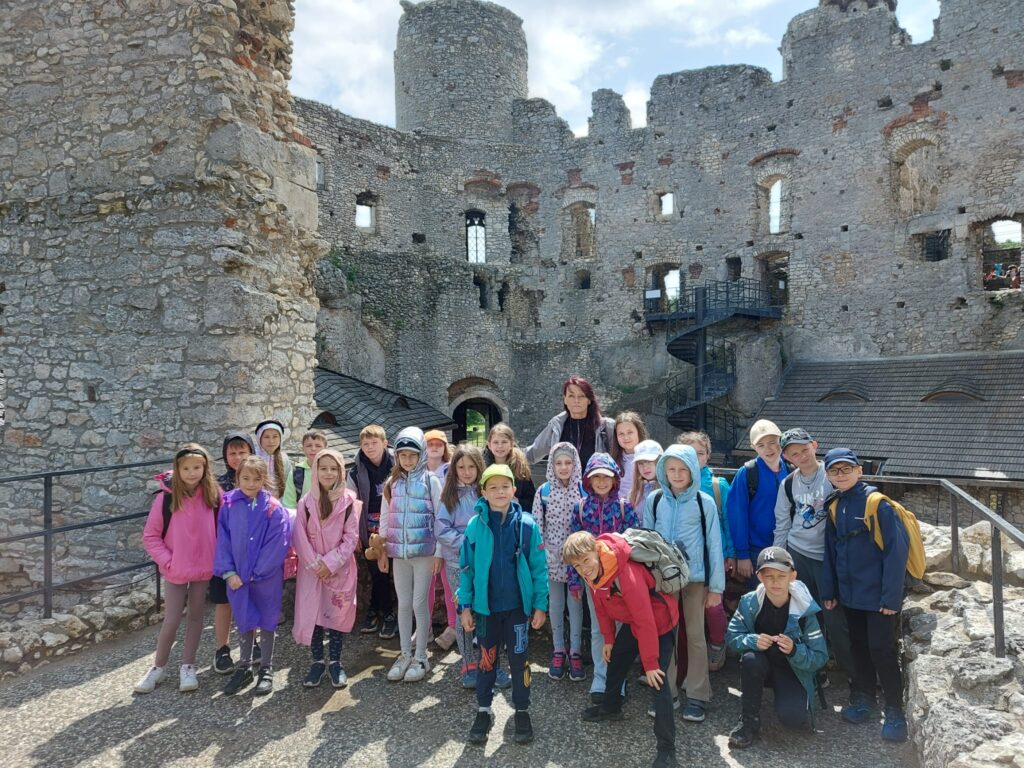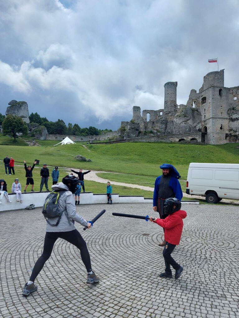 Środa była trzecim dniem Zielonej Szkoły. Ze względu na bardzo zmienną pogodę i mnóstwo atrakcji ten dzień okazał się najbardziej ekscytujący i jednocześnie najbardziej wymagający. Zaraz po śniadaniu w Ogrodzieńcu zwiedziliśmy największy na Jurze Krakowsko-Częstochowskiej zamek średniowieczny, a potem odbyliśmy „podróż w czasie”. Podczas Lekcji Żywej Historii dowiedzieliśmy się wiele ciekawych informacji o średniowieczu i panujących w tamtych czasach zwyczajach rycerskich. Każdy z nas mógł też zamienić się w rycerza i odbyć prawdziwą walkę na miecze. Kolejnym punktem programu było zwiedzenie w Parku Doświadczeń Fizycznych oraz pobyt w Domu Strachów.