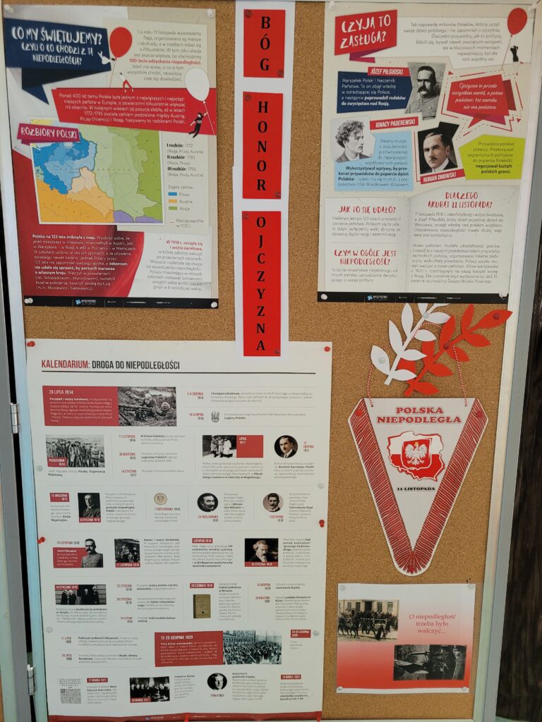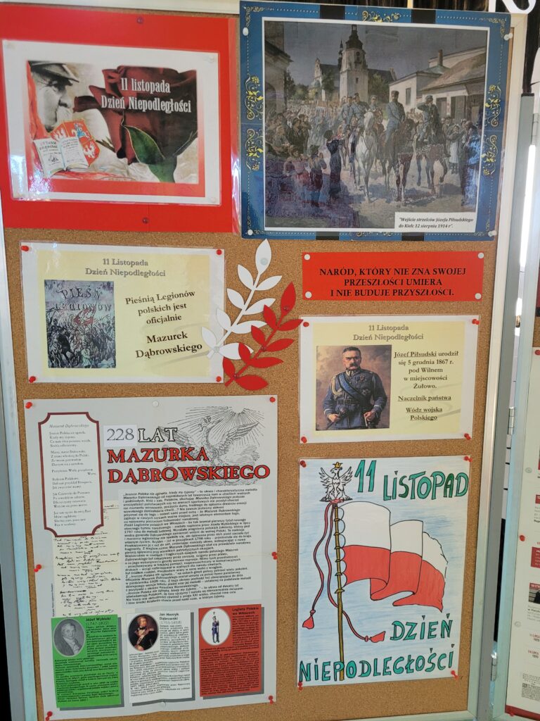 Rocznicę tego wydarzenia obchodzimy jako narodowe święto, przywołując odzyskanie niepodległości po 123 latach zaborów. Jak co roku bibliotekarze przygotowali gazetkę ścienną oraz wystawę z okazji obchodów Święta Niepodległości.