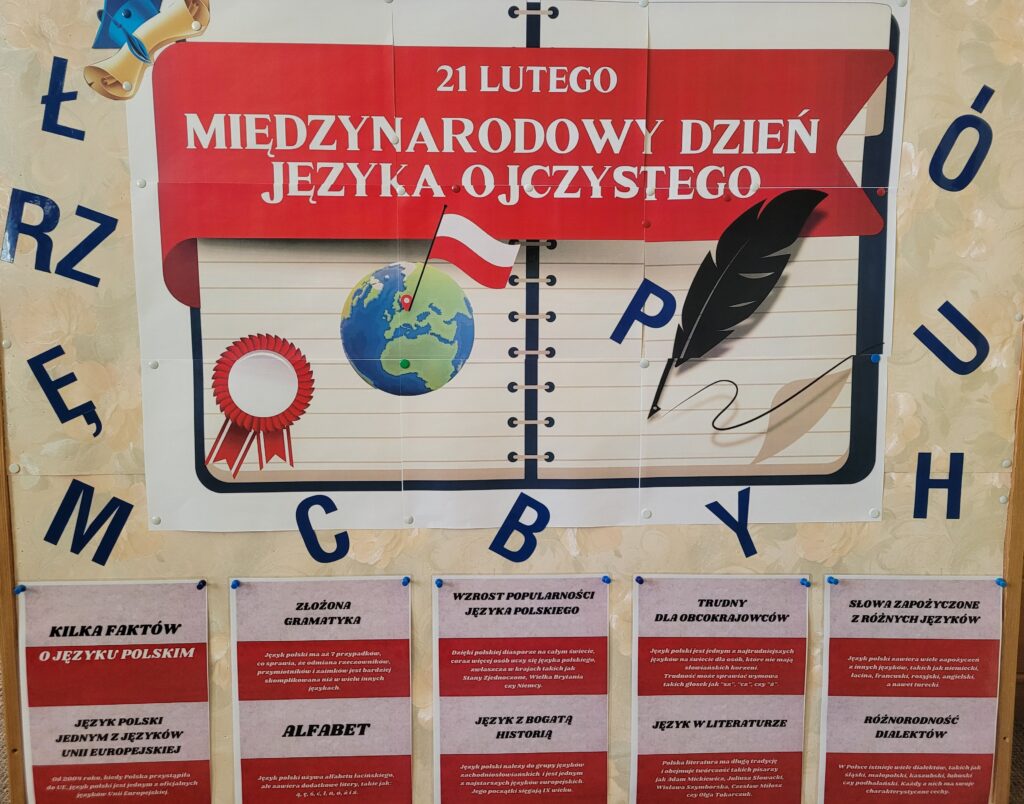 21 lutego obchodzony jest Międzynarodowy Dzień Języka Ojczystego. To inicjatywa UNESCO mająca na celu ochronę różnorodności językowej świata i podkreślenie znaczenia języka w kształtowaniu tożsamości kulturowej, historii i tradycji narodowej. Obchody polegają na promowaniu świadomości językowej, dbałości o poprawność języka polskiego (np. poprzez konkursy i kampanie) oraz zwracaniu uwagi na języki zagrożone i ginące. To święto przypomina, że język ojczysty jest nie tylko narzędziem komunikacji, ale fundamentem dziedzictwa narodowego. Z tej okazji bibliotekarze przeprowadzili zajęcia edukacyjne dla klas 1-3 w świetlicy szkolnej. Uczniowie próbowali odgadnąć ile jest języków na świecie, poznać ich różnorodność, co to jest język ojczysty i jakie ma znaczenie dla kultury danego narodu. Ponad to uczniowie uczyli się zapisywać najdłuższe i najtrudniejsze wyrazy języka polskiego. Zwieńczeniem zajęć było zmierzenie się z wypowiedzeniem tzw. łamańcy, krętaczy językowych, które przysporzyły uczniom sporo problemów, ale i dużo śmiechu. Uczniowie dowiedzieli się także, że język polski jest jednym z najtrudniejszych języków europejskich.