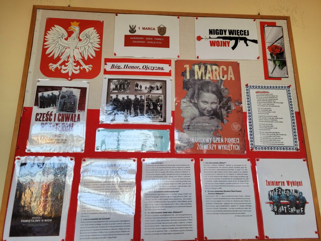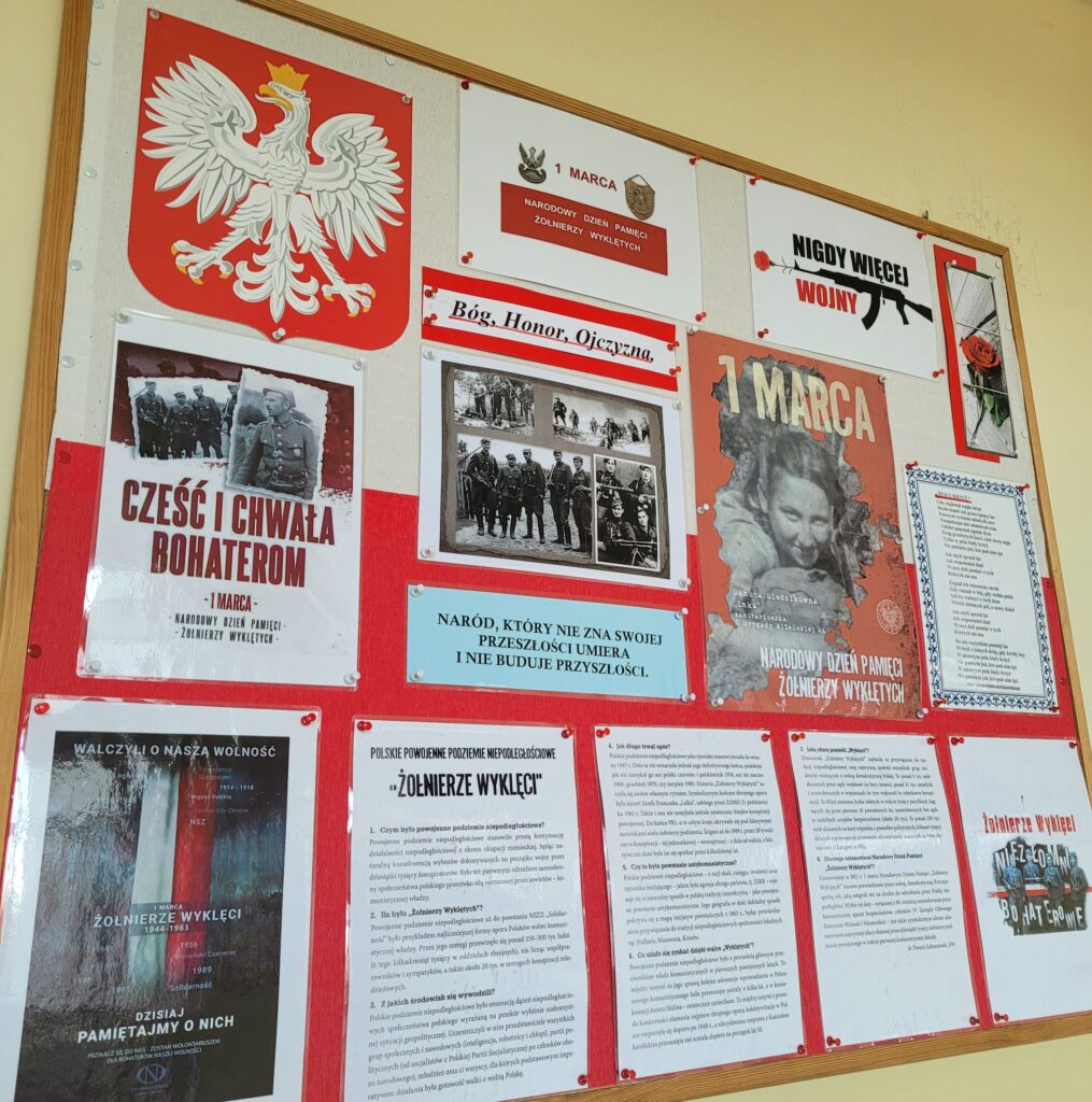 Nauczyciele – bibliotekarze przygotowali gazetkę ścienną poświęconą Żołnierzom Wyklętym.