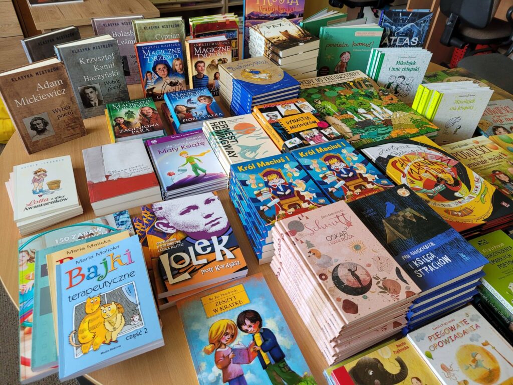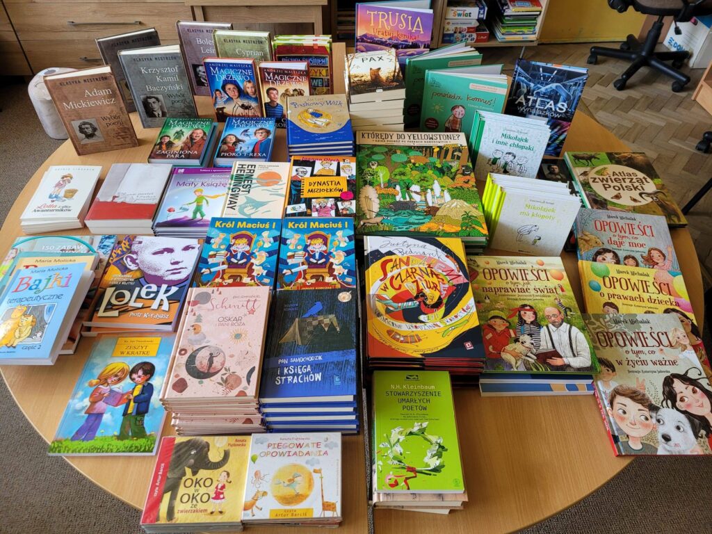 Dzięki współpracy z Fundacją Powszechnego Czytania, która prowadzi akcję „Książka Chroni” udało nam się pozyskać bezpłatnie publikacje w języku ukraińskim dla uczniów naszej szkoły. Książki przeznaczone są dla ukraińskich dzieci przebywających w Polsce i są one darmowe dzięki wsparciu ukraińskich wydawców oraz polskich drukarzy. Nasza biblioteka otrzymała 15 tytułów m.in. „Magiczne Drzewo” A. Maleszki, „Amelia i Kuba” R. Kosika, „Kocia szajka i zagadka zniknięcia śledzia” A. Romaniuk, „Kicia Kocia mówi: Dzień dobry!” A. Głowińskiej, „Mapirka i Czerwony Król – miasto krnąbrnego” M. Rybalko oraz „Mała czarownica Zuk ma wielkie serce” S. Bloch, N. Hubesch. Zapraszamy do biblioteki!