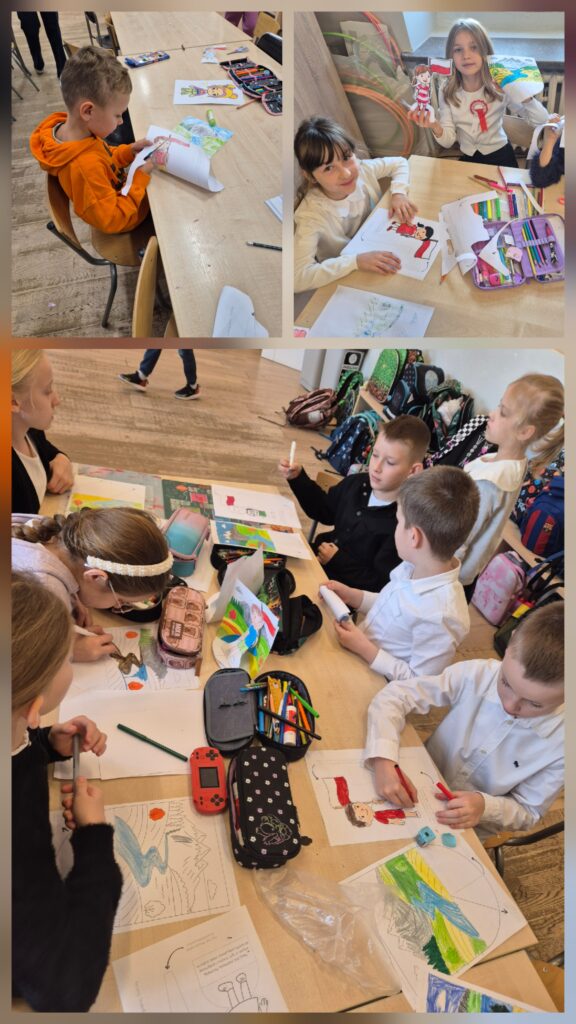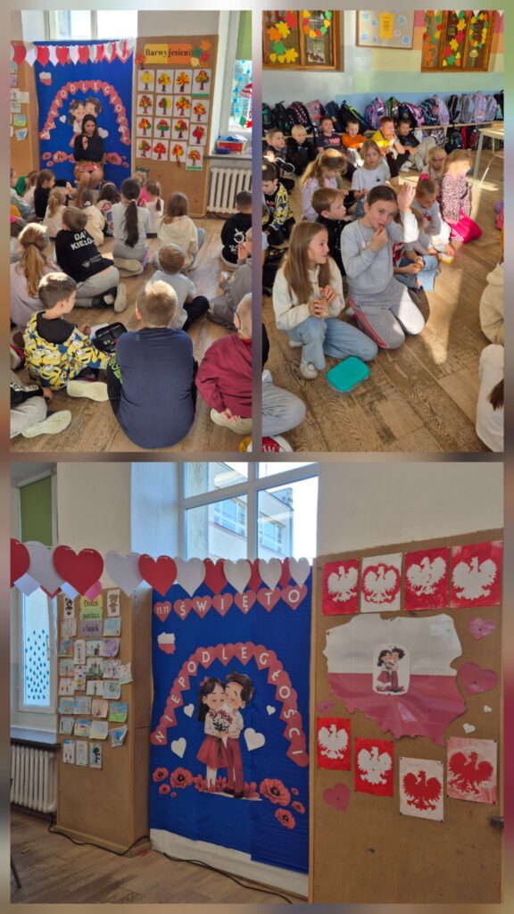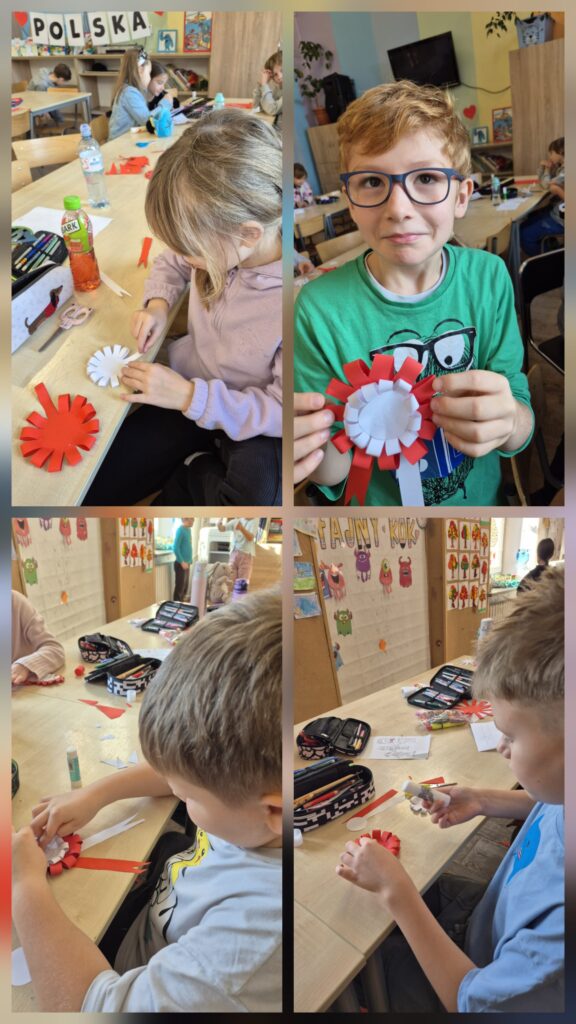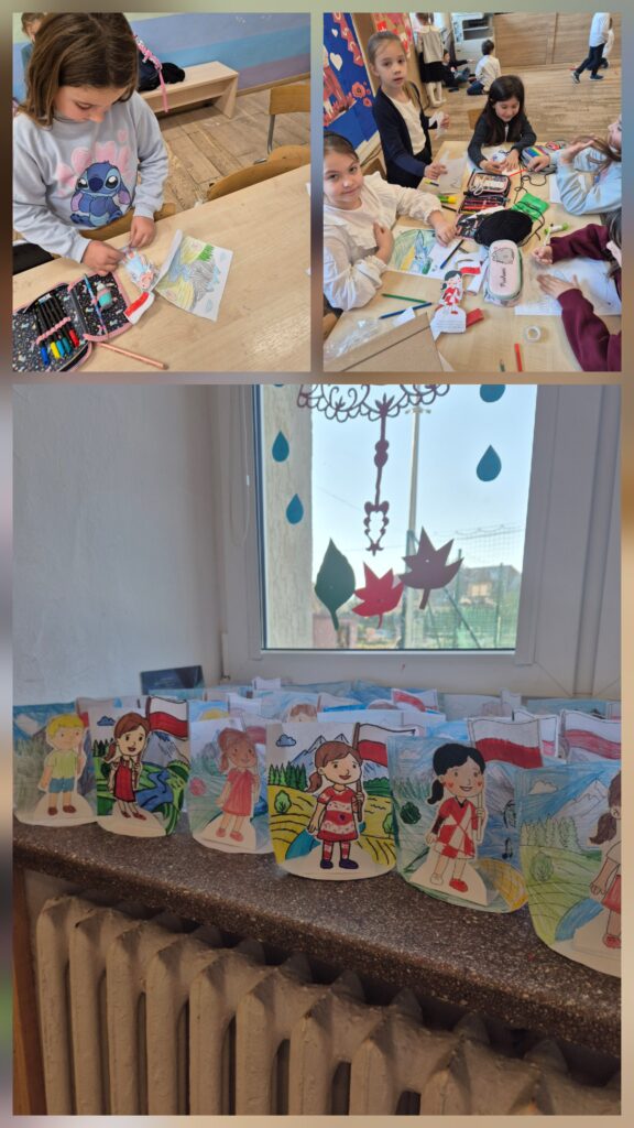 Z tej okazji dzieci wykonały przestrzenne prace plastyczne „Polak mały”, kotyliony 🇵🇱 oraz biało-czerwone orły, odbijane za pomocą gąbek 🦅. Odbył się również świetlicowy Konkurs Pieśni i Poezji Patriotycznej 🎤.